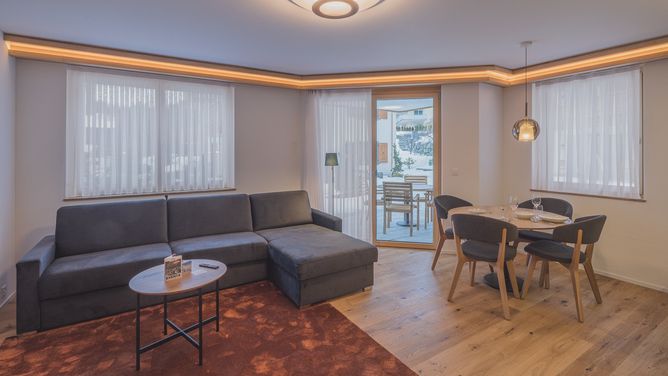 LiggingHet moderne aparthotel Val Saraina Resort ligt op ca.