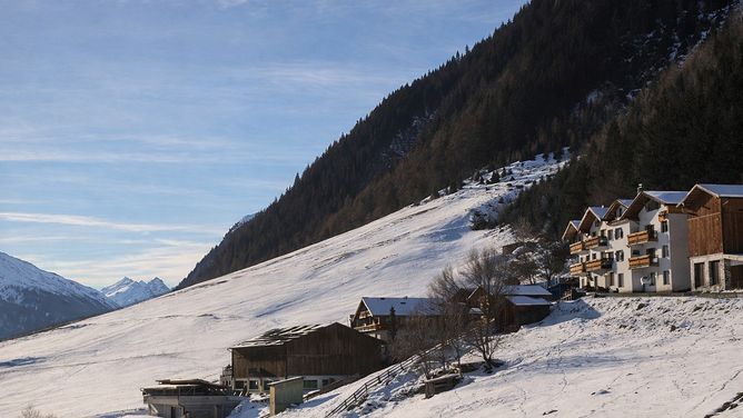 2,5 km van het centrum van Ischgl in de wijk Vergröß op een hoogte van ca. 1.365 m. De toegang tot het skigebied is via de op ca. 2 km afstand gelegen lift Pardatschgratbahn of de op ca.